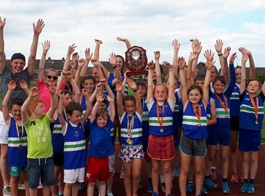 It’s our second time winning this Shield and it was down to some wonderful performances from our juveniles, with Holly Murray taking home the first medal of the day in the U8 60m. Holly went on to take gold in the 200m and alongwith 3 other individuals took gold again in the U9 Mixed Relay. Also flying the flag for the U8s was Tom Joe McCormack who took silver in the 80m & 200m and moving up an age to join his club mates Jack Duffy, Alex Callan and Oran Lynch came 1st in the U9 Boys’ Relay. These three U9 boys also ran well qualifying in the 60m and just missing out on the medals in the 300m. Another U9, newcomer Molly Keenan preformed really well in her events and was outstanding alongside club mates Caoimhe Carolan, Jessica McCarron and Emily O’Reilly (St. Peter’s AC) in coming 2nd in the U11 Girls’ Relay. Our two U11 boys did well too, Dylan McCarron and Arthur Sands coming 2nd and 3rd respectively in the Turbo Javelin with Dylan taking home another medal alongside club mates Charlie Sands, Jack Dowdall and Jack McCarran coming 2nd in the U13 Boys’ Relay. Jack Dowdall himself was on fire today coming 1st in the U12 100m and Long Jump and 2nd in a very exciting 600m race. Amy Murray for the U12 girls came 3rd in the 100m and Jack McCarron had an impressive run coming 3rd in his U13 600m race. James Maguire too was on fire today taking gold in the U14 100m and Long Jump with Orlaith Carolan taking bronze in the Girls’ U14 100m. Orlaith was joined by club mates, Samantha Carolan, Ruth Gillespie and Isabelle Delaney who came 2nd in the U15 Girls’ Relay. Isabelle also took home another medal in the U15 Long Jump coming 3rd with club mates Eireann Hoey and Rebecca McCarron just missing out in the medals. Our U16s, Aoibheann Carolan and Emma Gillespie were in sprinting form today coming 2nd and 3rd respectively in the 100m and Aoibheann taking gold again in the U17 Girls Relay and for the Toddler Race we had 3 aspiring competitors, Sean McCormack, Frank Sands and Patrick Callan. Well done everyone, and congratulations on winning the Pat Walker Memorial Shield again this year.