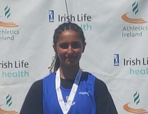 On Days 2 & 3, June 13th & 14th also in Tullamore both Kya Mothiram and Abbie Sheridan hit the podium. In the field it was Double Gold for Kya throwing a personal best of 23.74m in the U14 Discuss (0.75kg) and 11.8m in the U14 Shot Putt (2kg) and over on the track running 10:30:03 minutes in the U18 3000m Abbie proudly took home the Silver. What an amazing achievement for both these young athletes, so well deserved.
